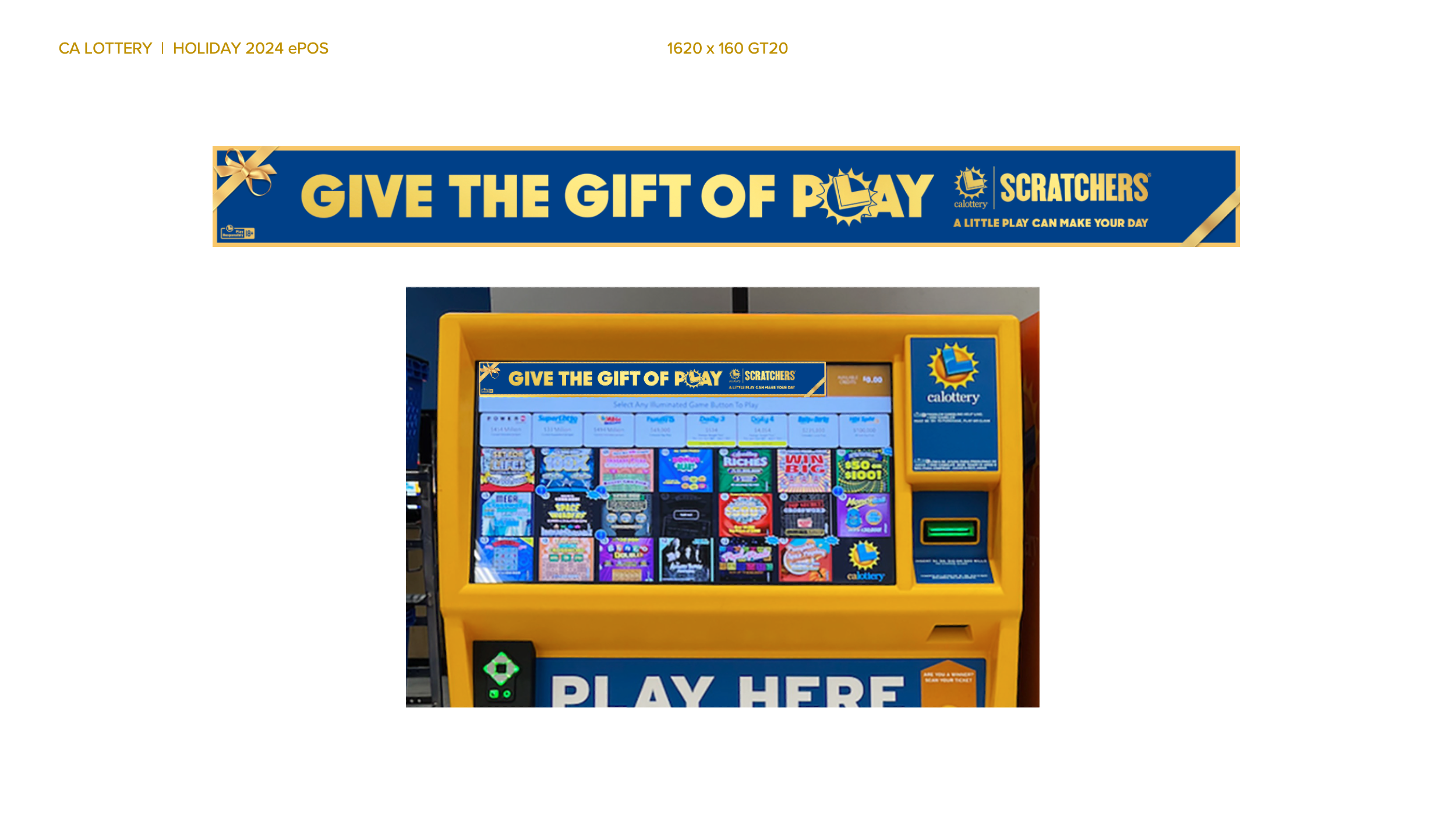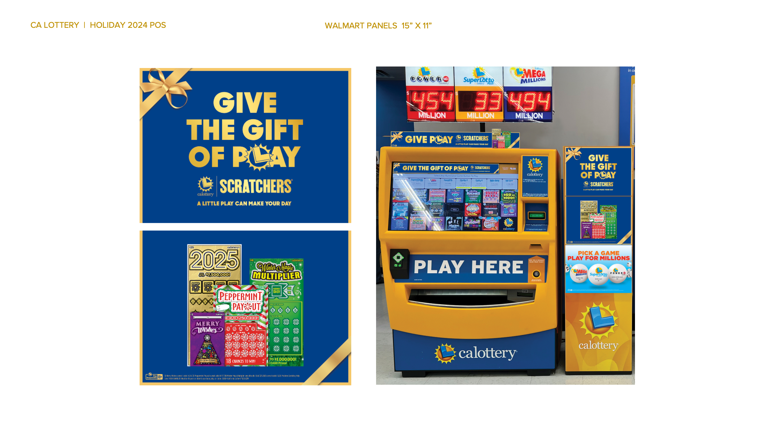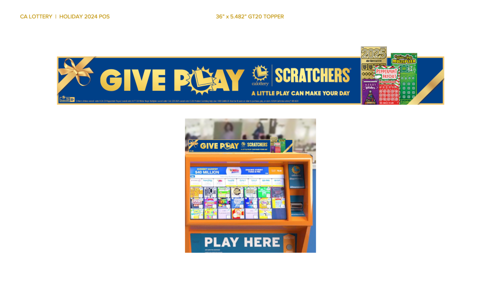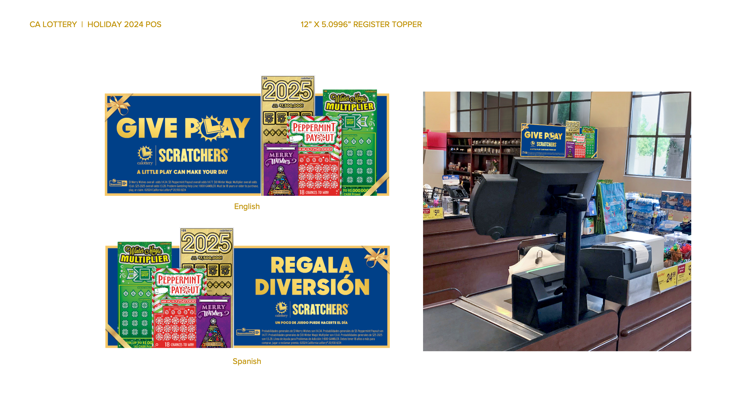 Designed the key visual concept for the California Lottery Holiday Scratchers campaign, translating the 2024 holiday look and feel into bold, gift-driven point-of-sale and experiential creative that cuts through retail clutter, amplifies playful calls-to-action, and inspires core, casual, and new players alike to share Scratchers as a fun seasonal gift.