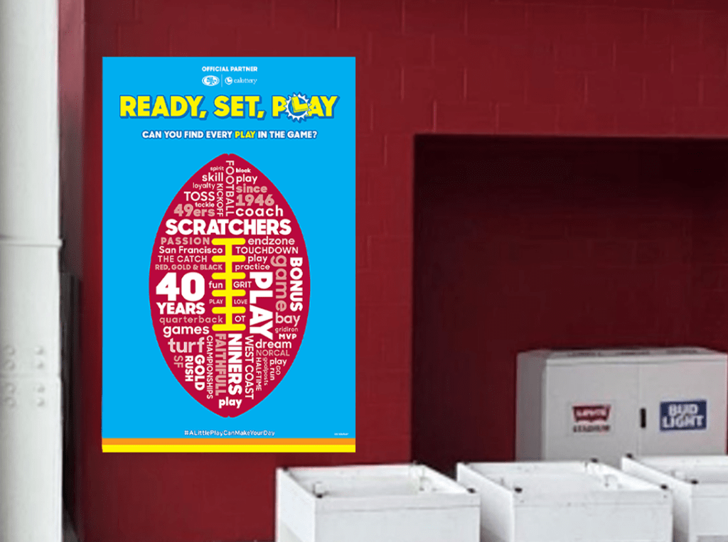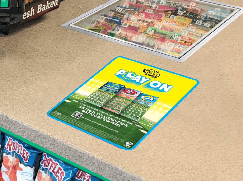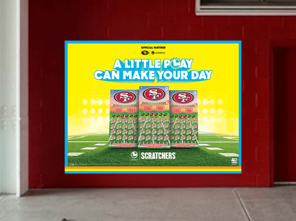 As part of a statewide partnership with the NFL, California Lottery set out to connect its brand to three of California’s most iconic teams—the Rams, Chargers, and 49ers—across retail, stadium, digital, and live fan experiences. I developed the key visual and creative framework that anchored the campaign, balancing California Lottery’s core brand with subtle team-specific cues to authentically tap into fan culture. Designed to scale across preseason and regular season play, the system flexed seamlessly from in-store retail and ePOS to stadium concourses, in-game video boards, LED ribbons, social, paid digital, and experiential activations. The result was a cohesive, flexible platform that met fans where they already were—on game day, in-store, and online—while positioning California Lottery as a proud supporter of California football and its fans.